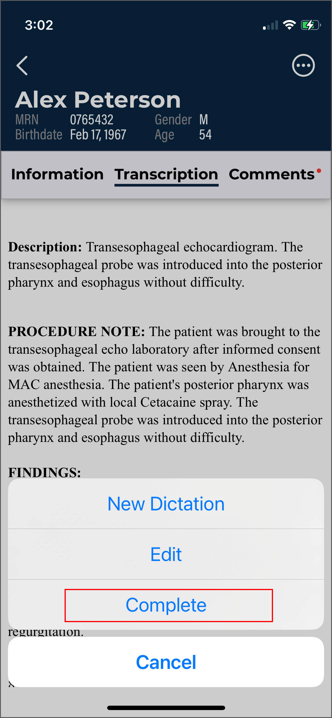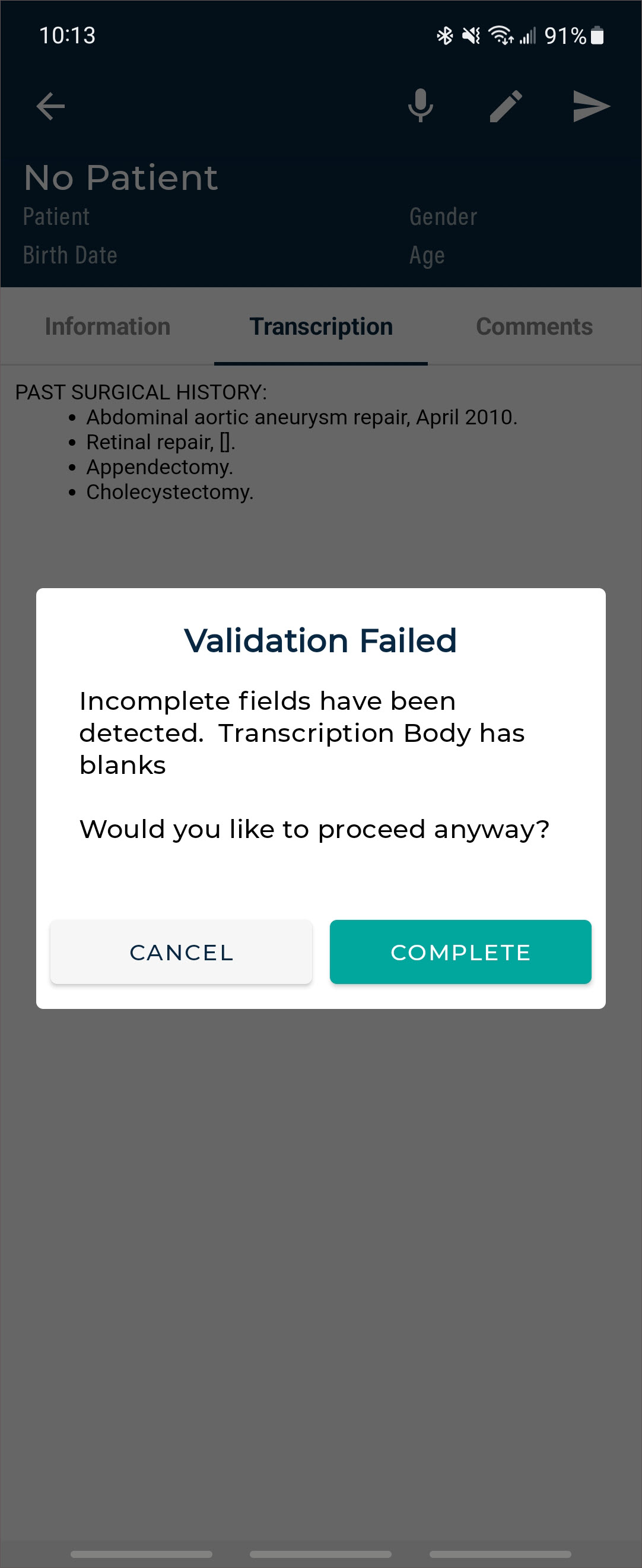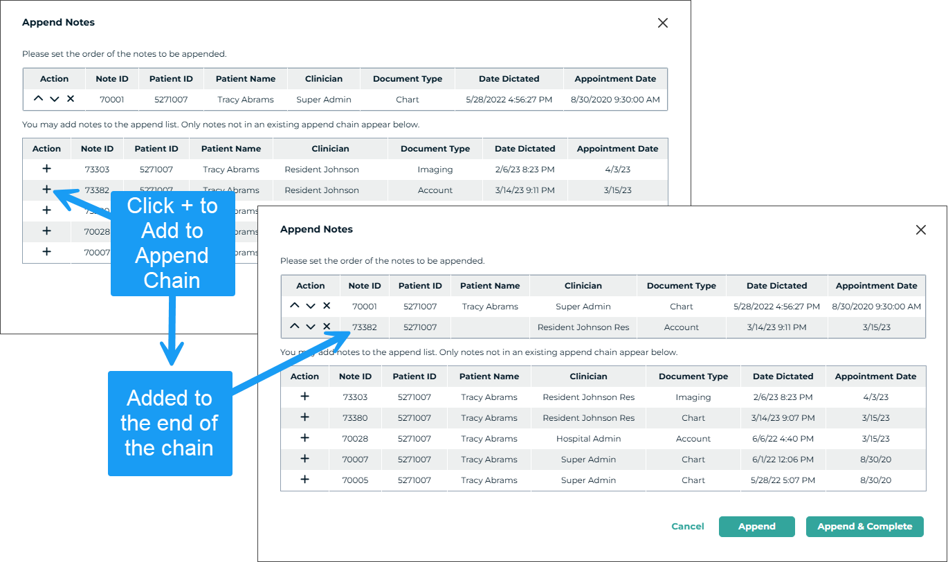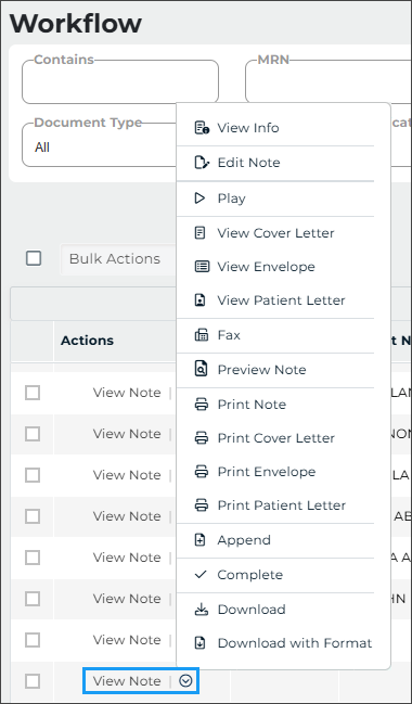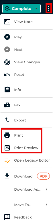 - Complete or Complete/Next to finalize the changes and move the note along in the workflow.