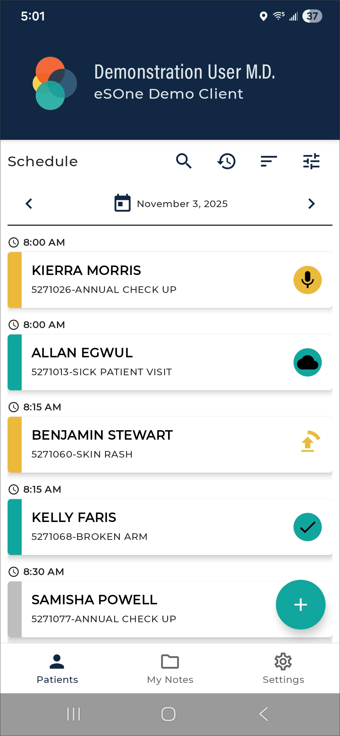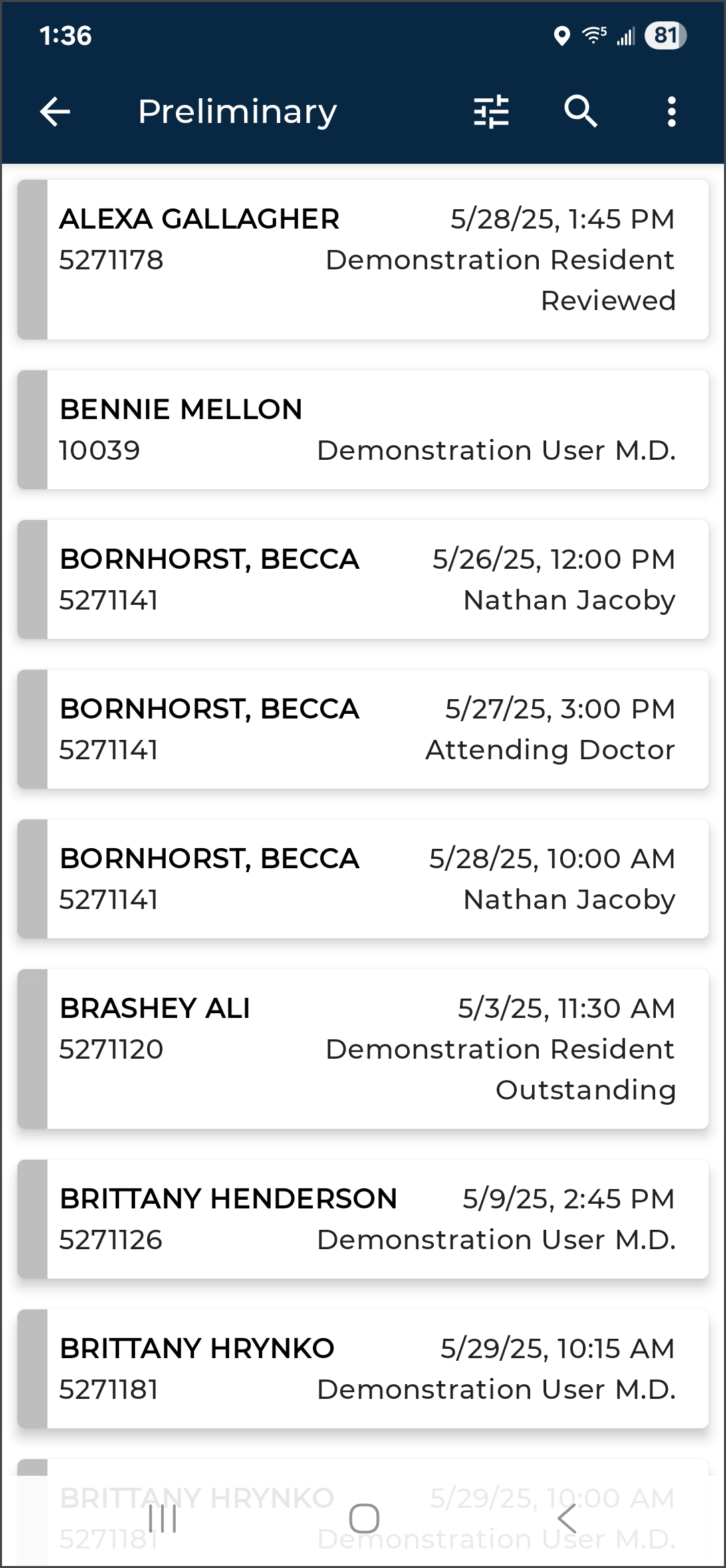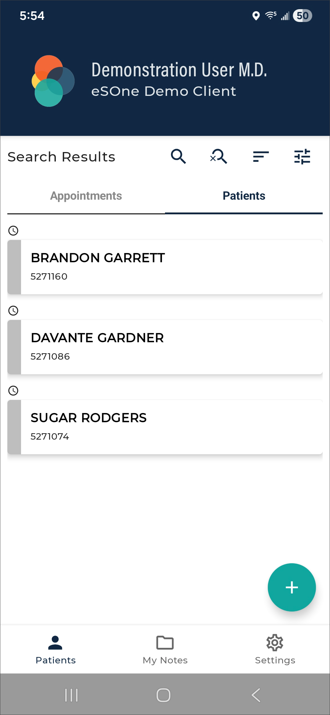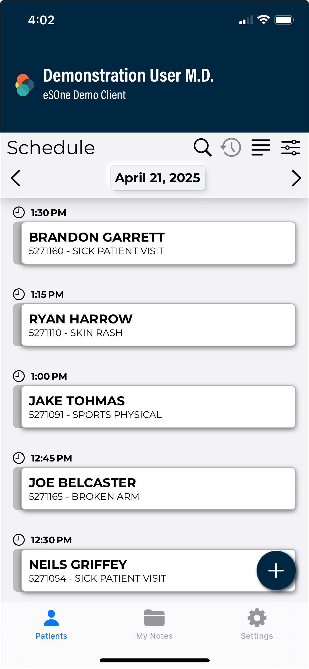 The eSOne mobile app supports outpatient and inpatient schedules. By default, the app opens to schedule (outpatient) mode. The mode can be changed in Filters the schedule filters. This section of the user guide will focus on the outpatient schedule mode. See Inpatient Workflow for more information about inpatient mode.