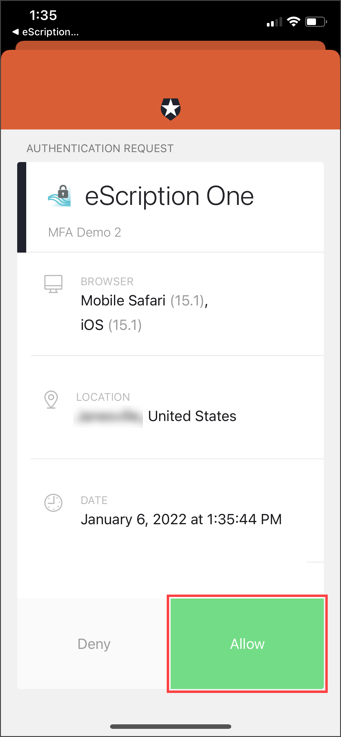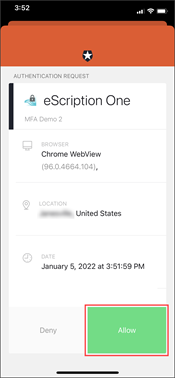 Depending on your device and Guardian app settings, you may receive a push notification for the authentication request. If so, tap Allow in the push notification.