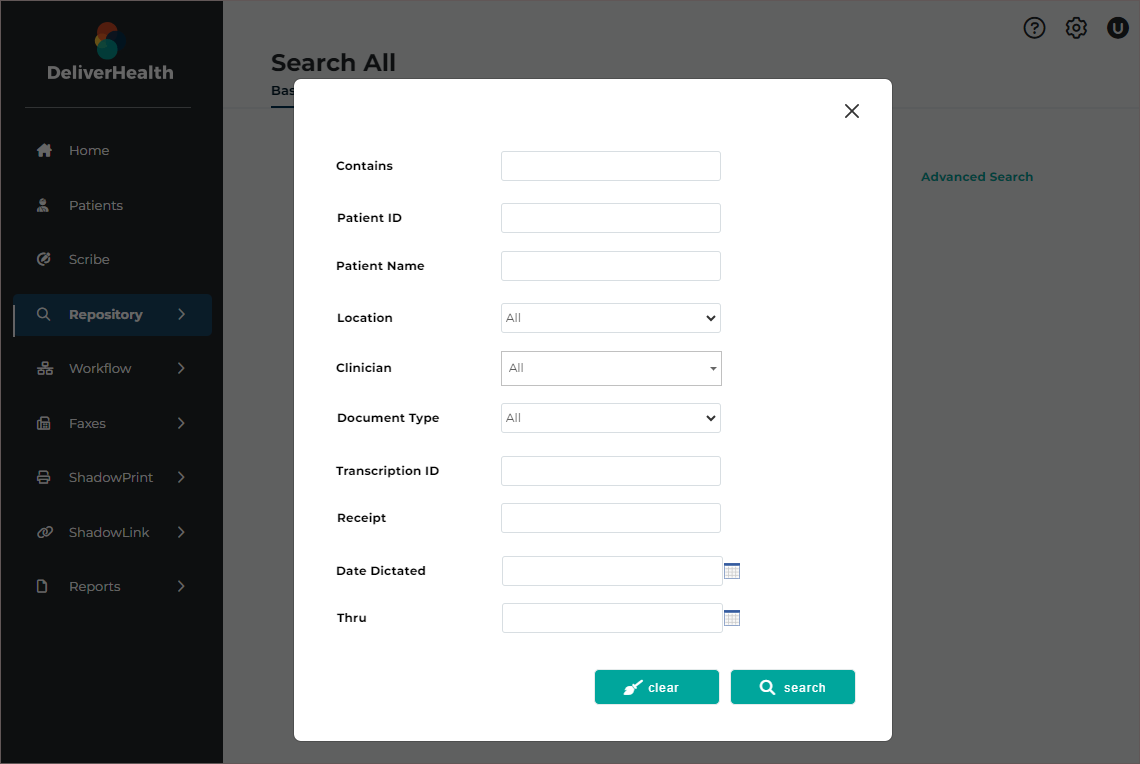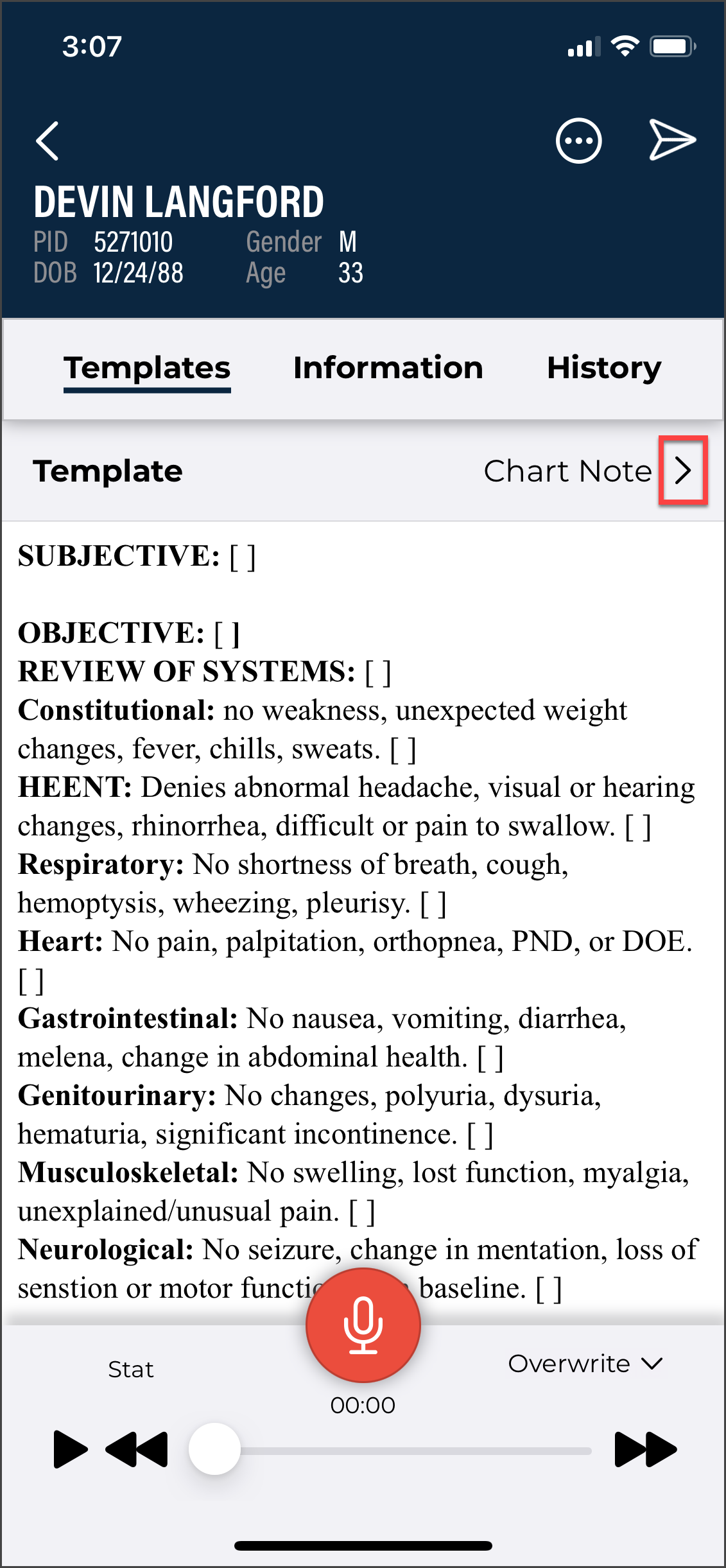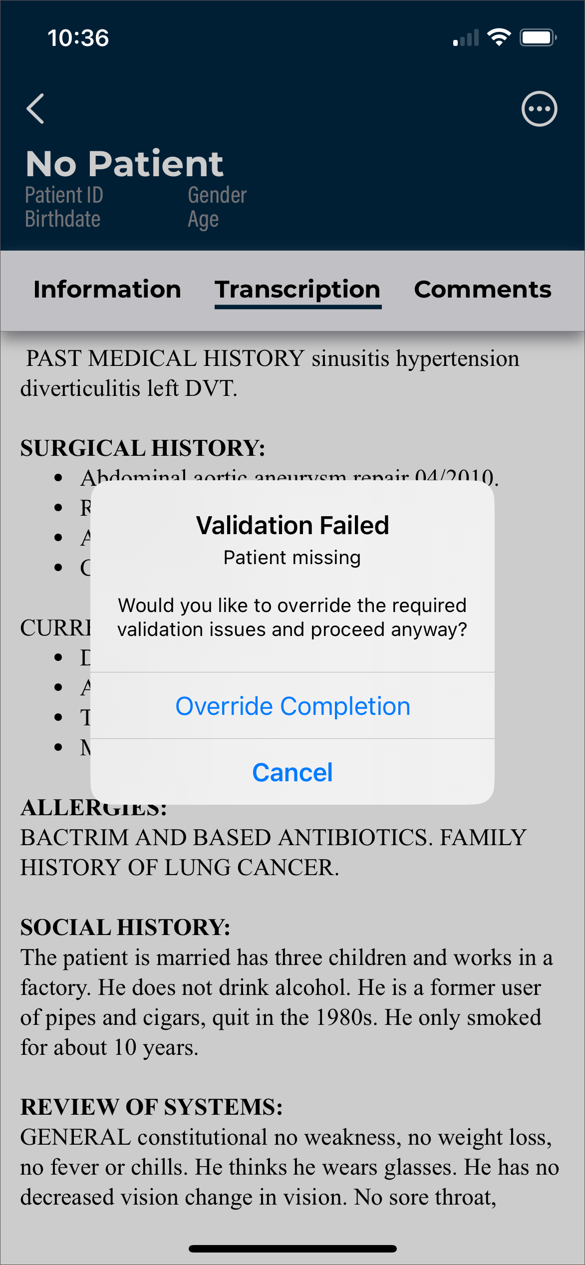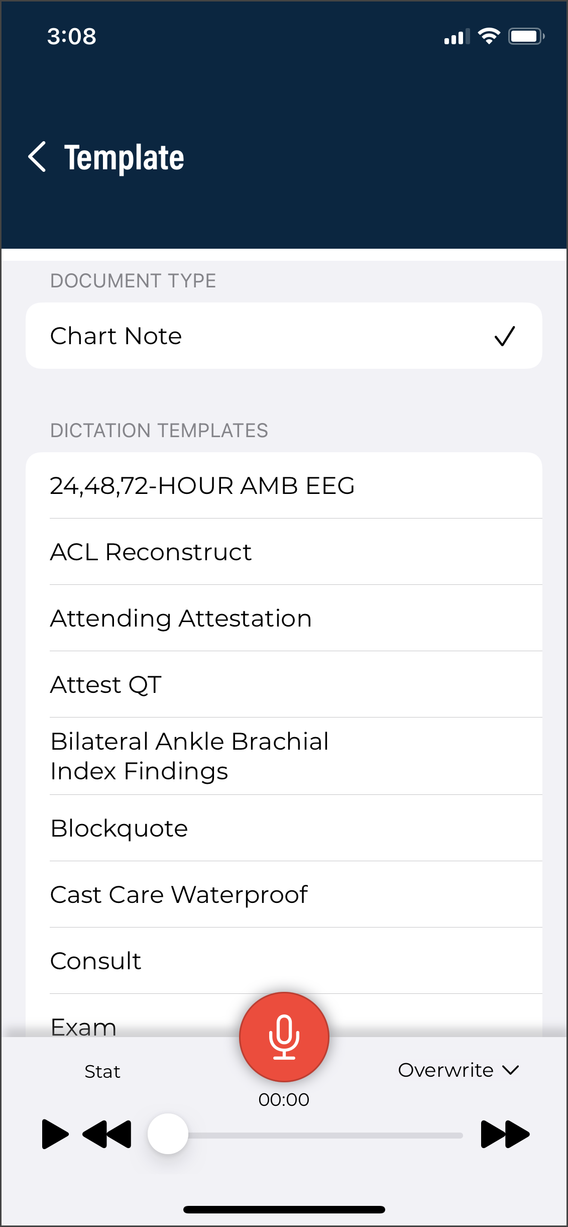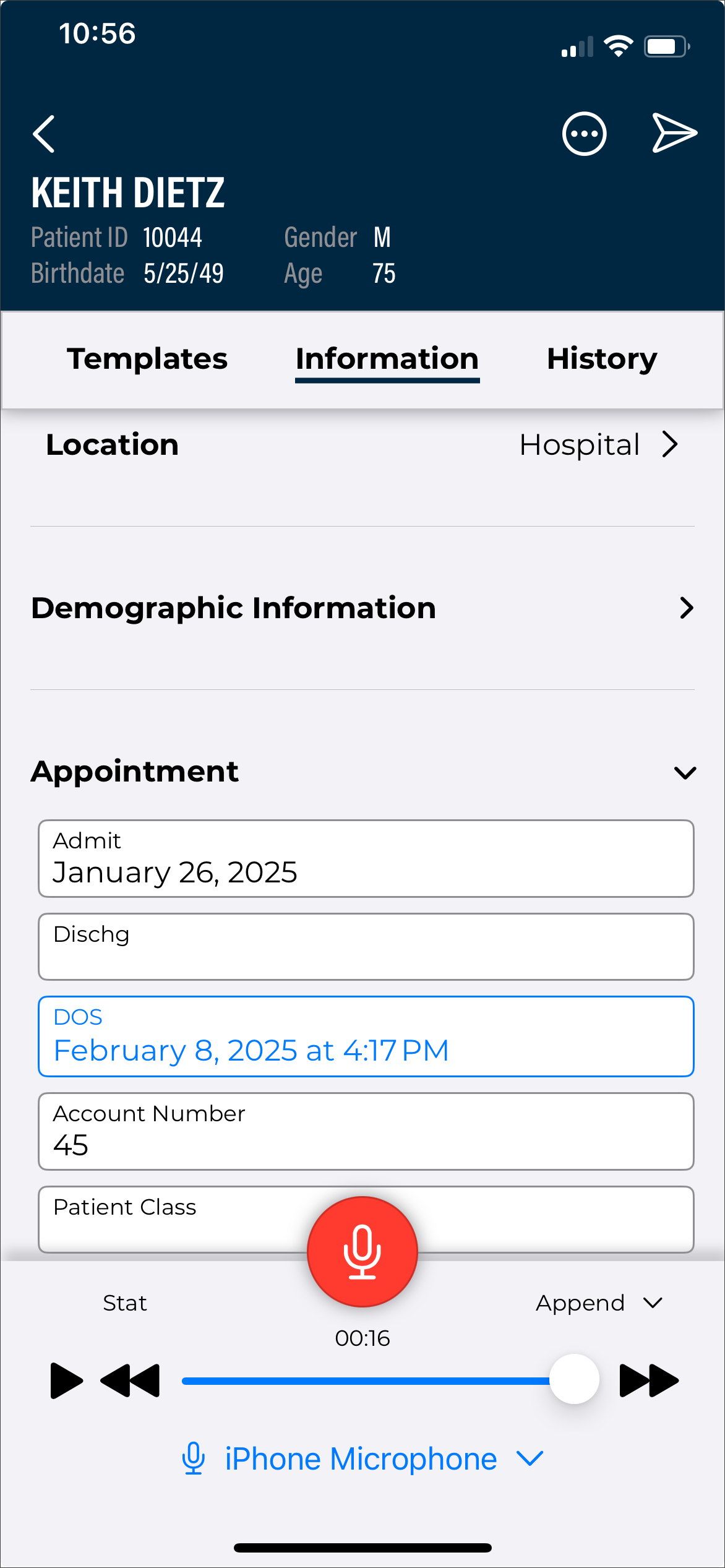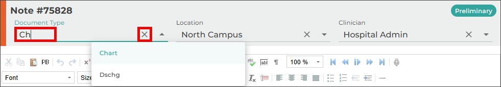 - Verify the correct Document Type and Dictator are selected in the demographics.