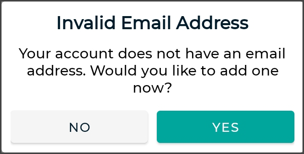 Valid Email Check: If you have not entered an email address, you will be prompted to add one. You can skip this step, but you will be prompted again on your next login.