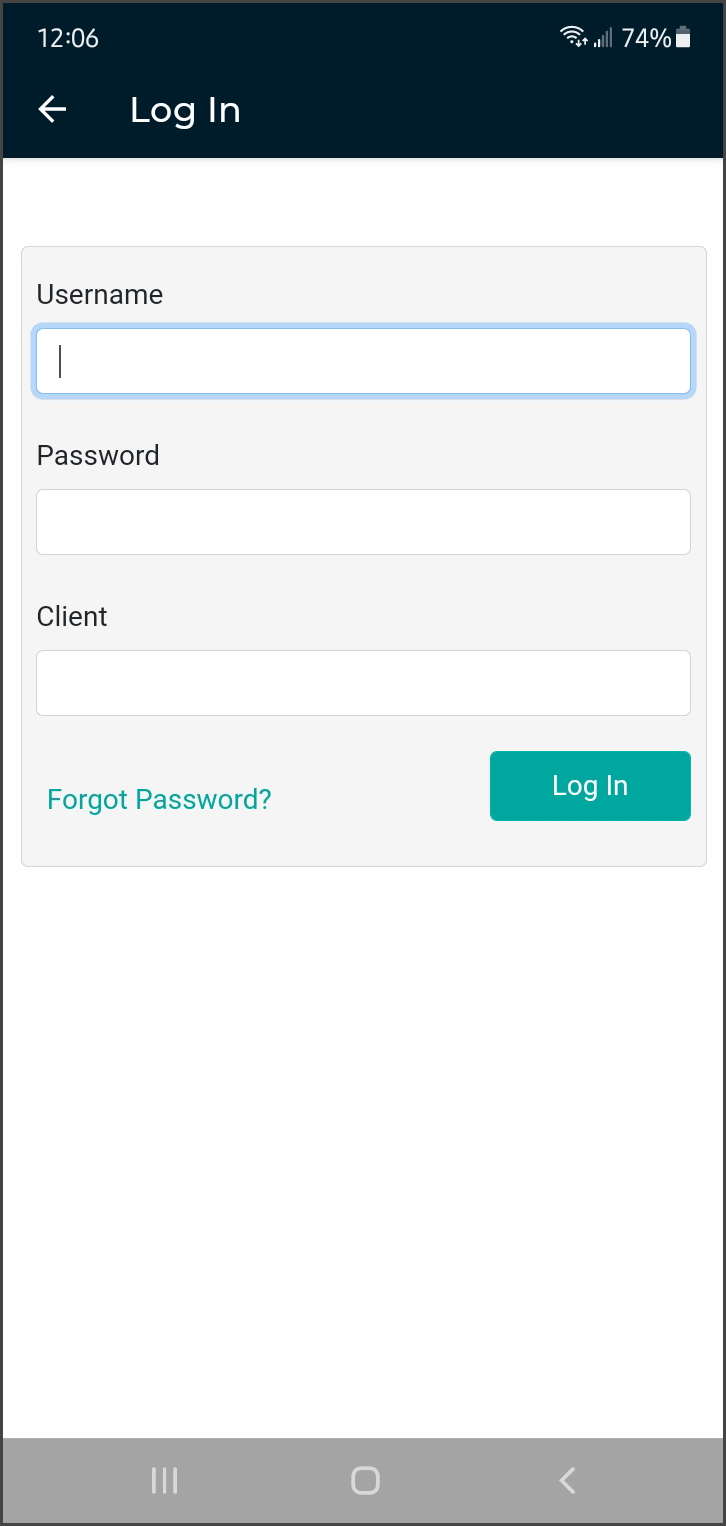 If you did not enter your Username and Client Code on the login screen, you will need to enter them here.