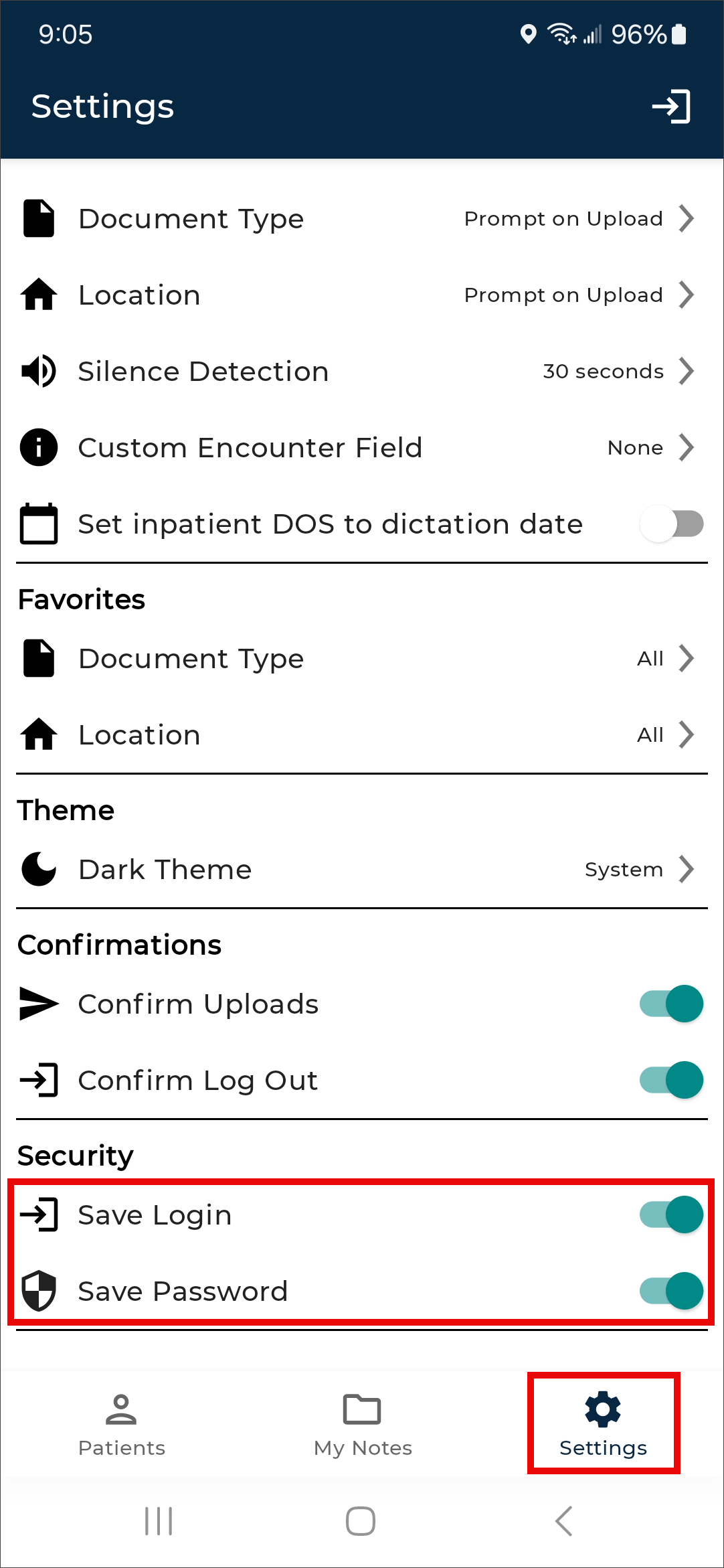 Please note that with 'Save Password' enabled, anyone with access to the device can access the eSOne account and the confidential medical records in it.