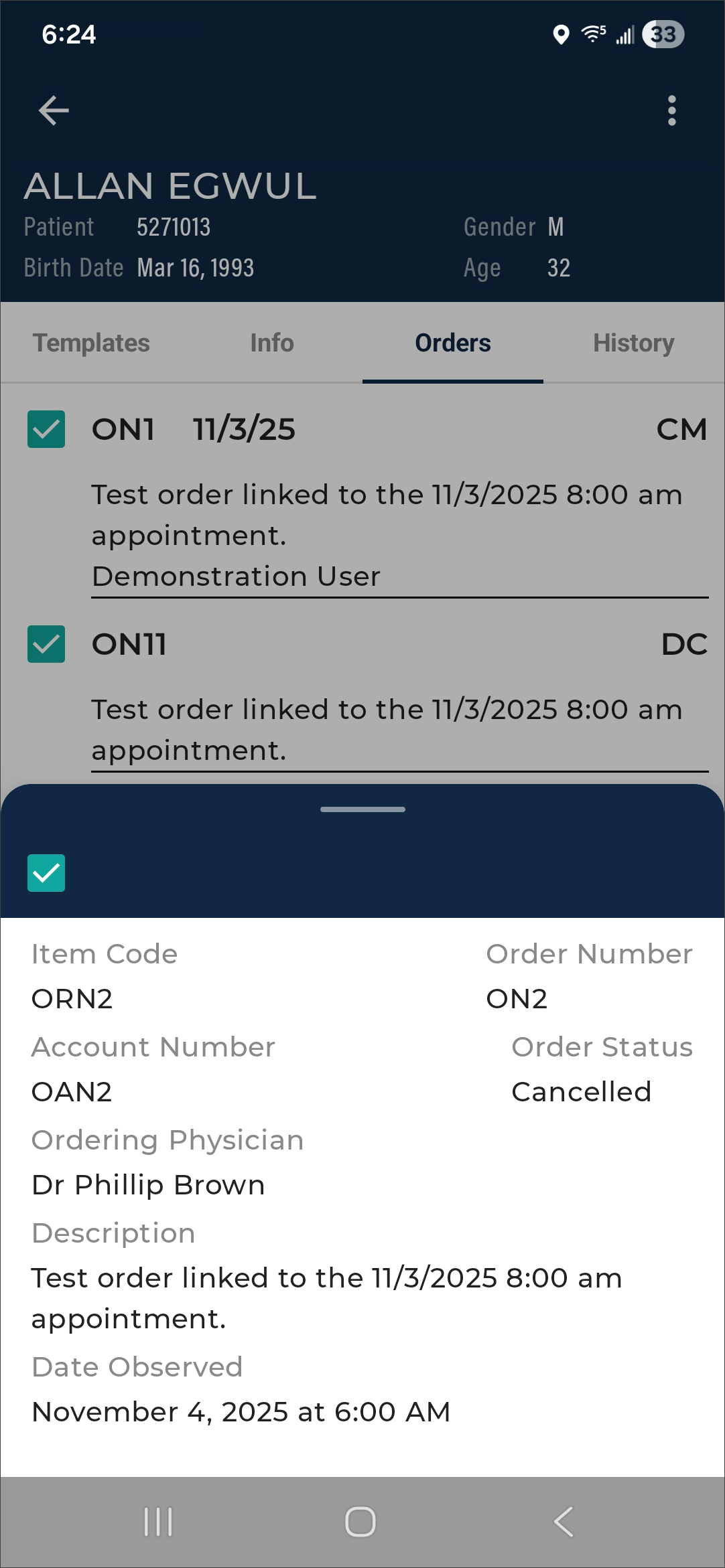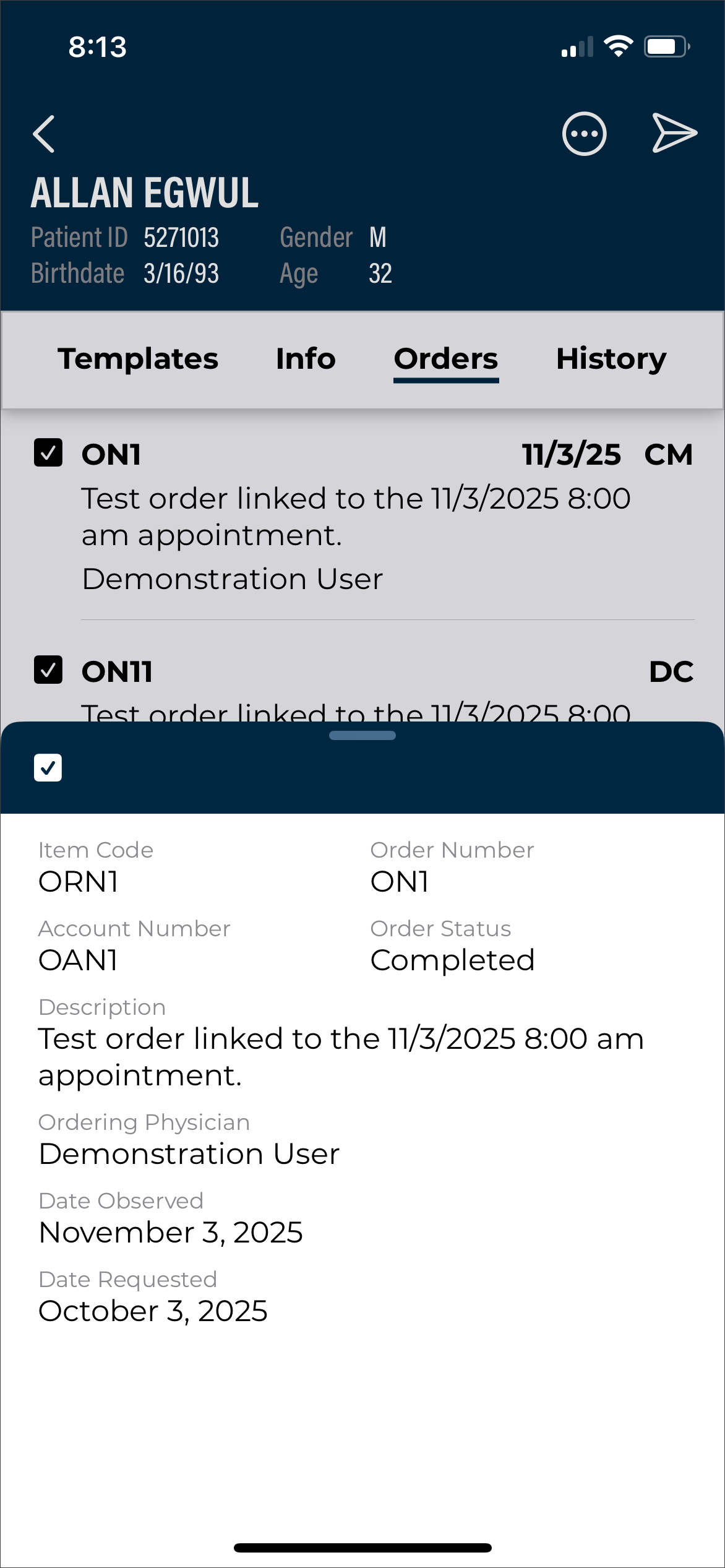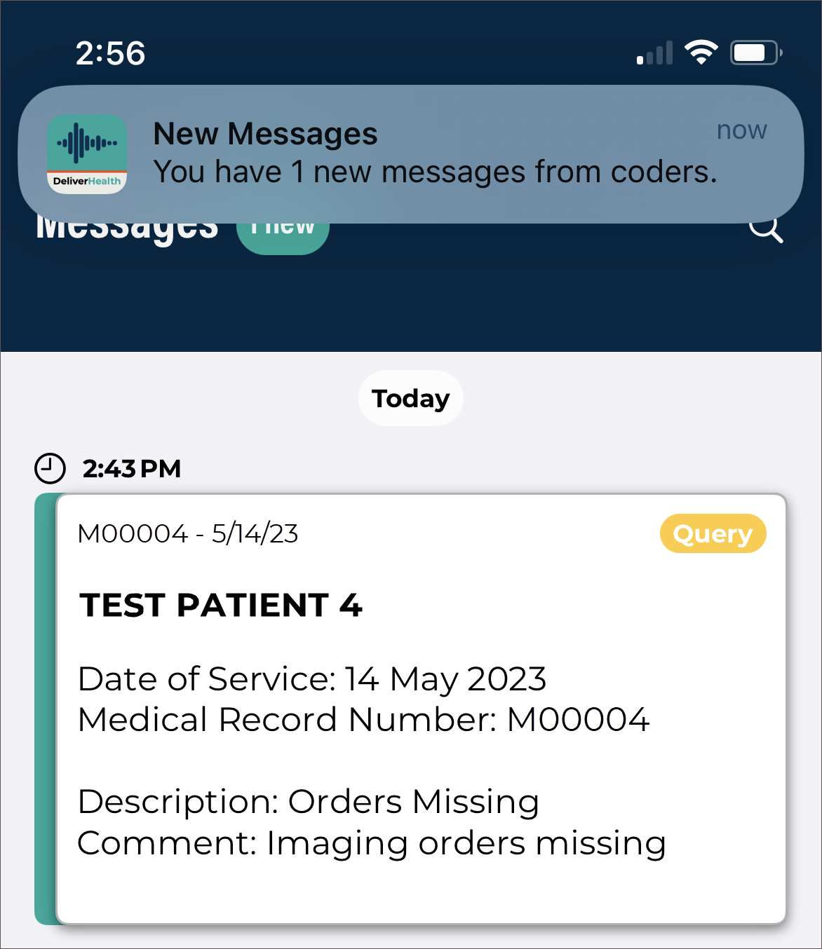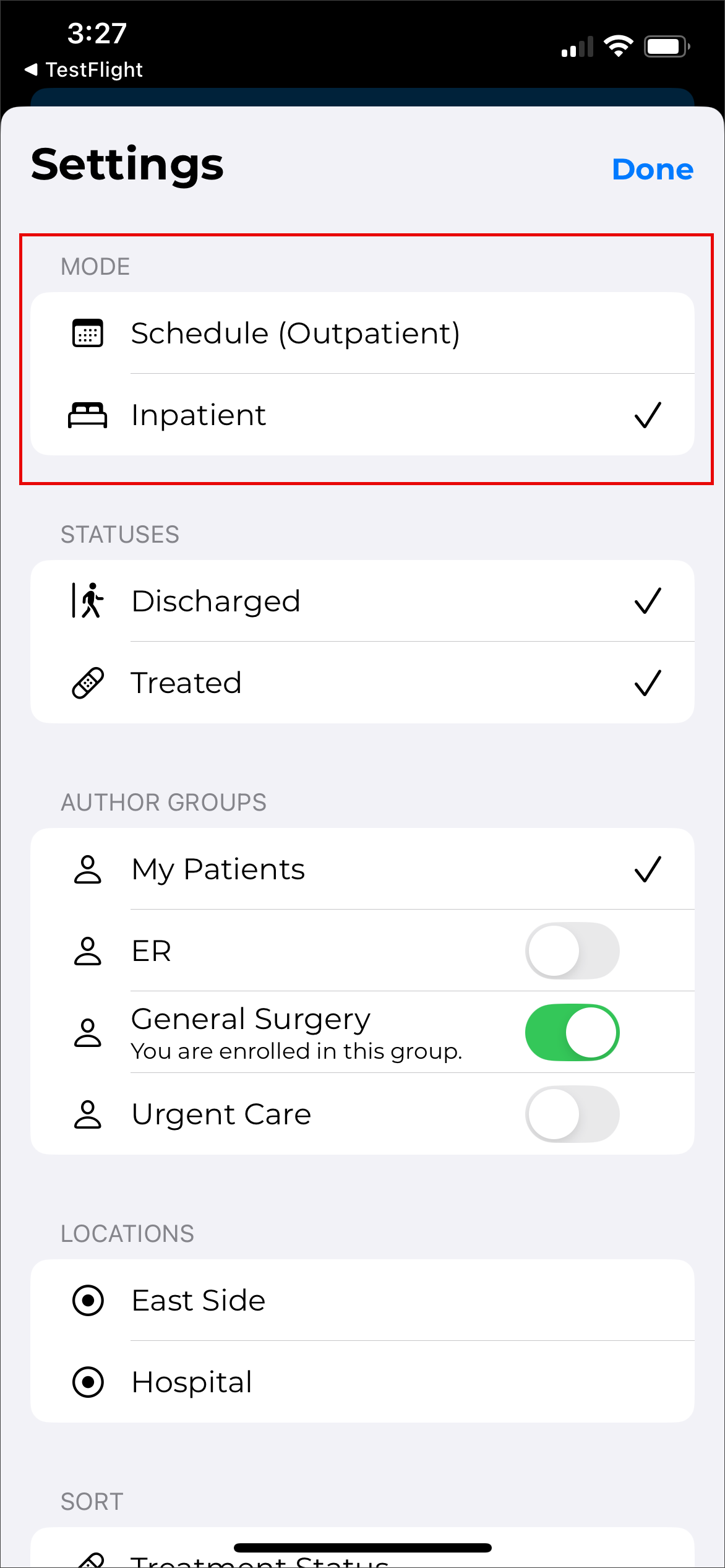 If the client supports both inpatient and outpatient workflows, users can switch between them by tapping the desired mode. For more information regarding the inpatient workflow within the mobile app, please see Inpatient Workflow. The following information in this section assumes an outpatient workflow is being used.