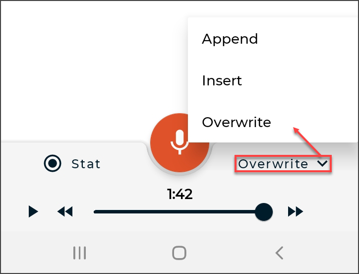 If a phone call is received while dictating, eSOne Mobile will pause the recording. Dictation that was made prior to the incoming call will not be lost; to resume dictating after finishing the call, tap the record button again and continue to dictate.