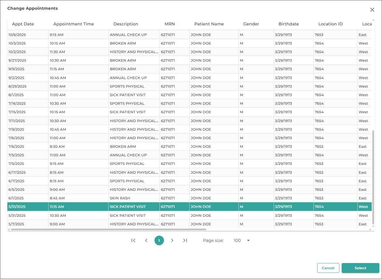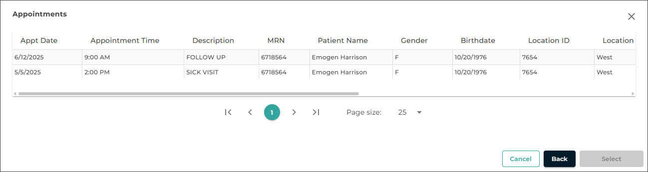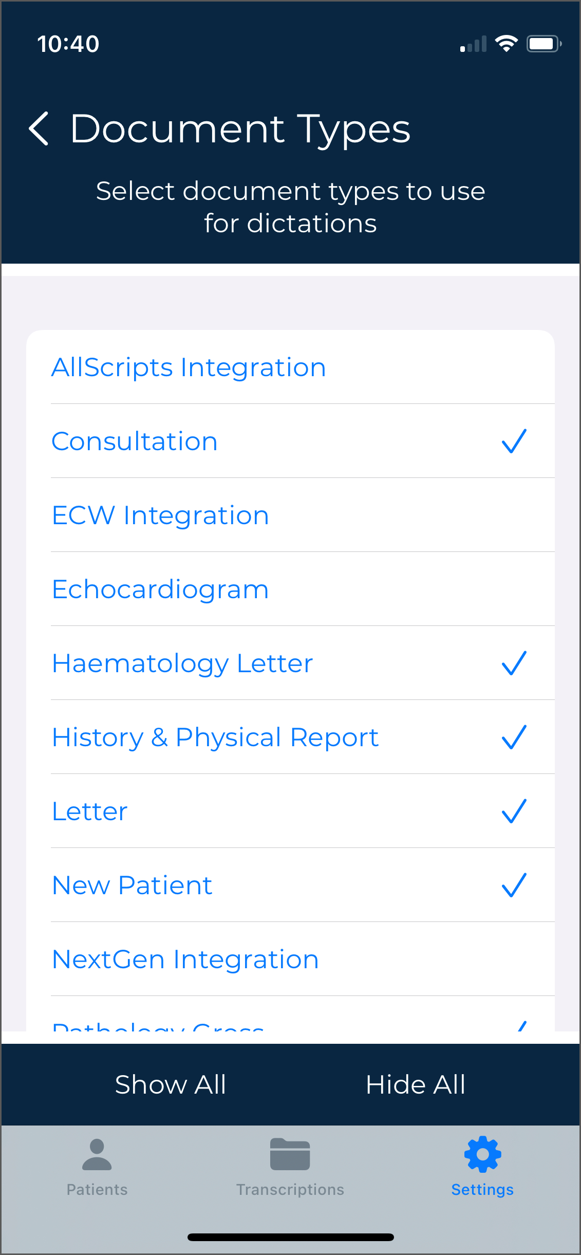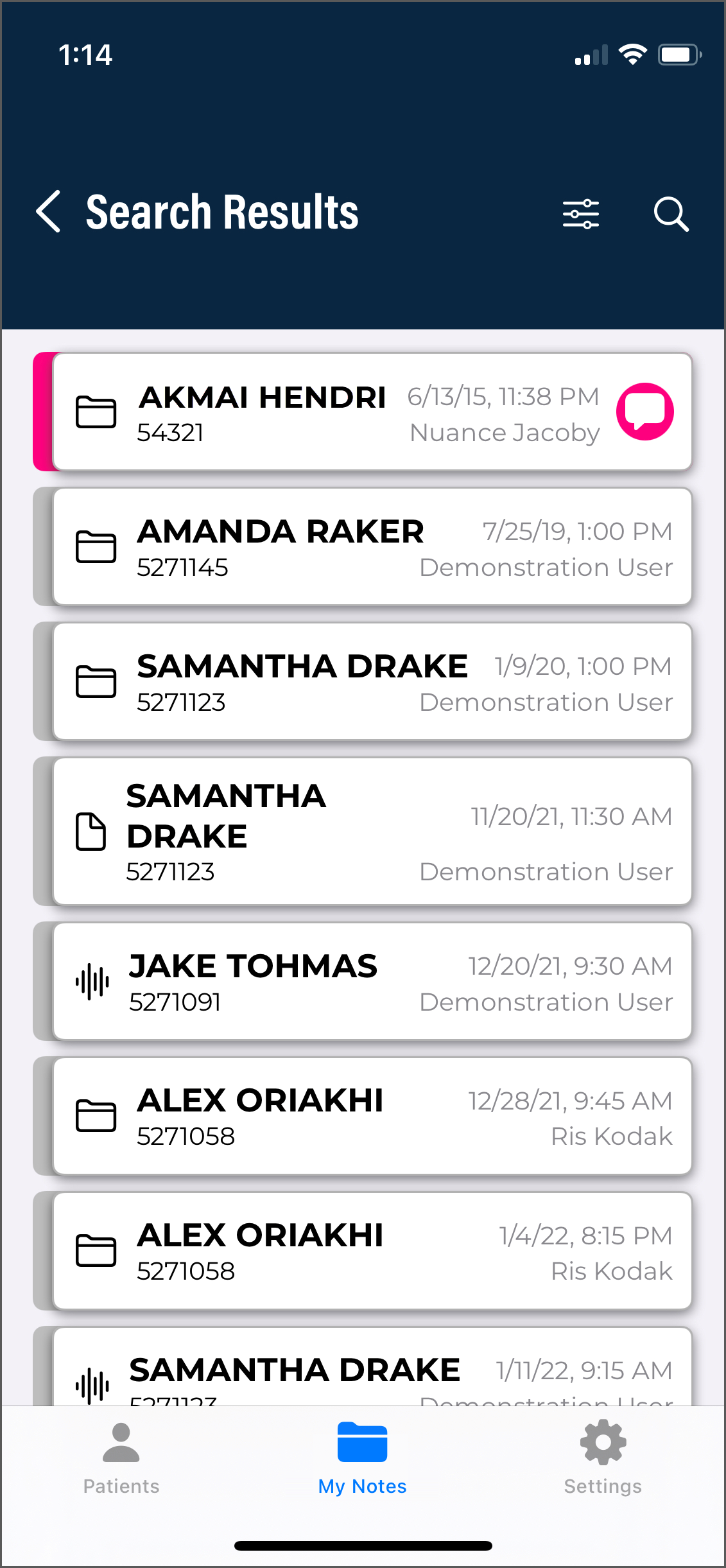 Use the Patients tab to view a list of patient appointments/encounters and create dictations.
