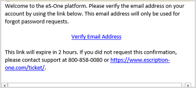 Email verification: Once an email address is added, an email is sent to your address to verify it.