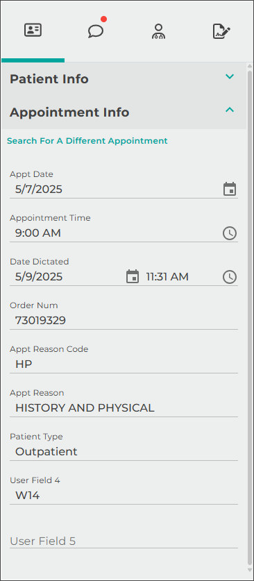 - Verify the correct Document Type and Dictator are selected in the Info tab.