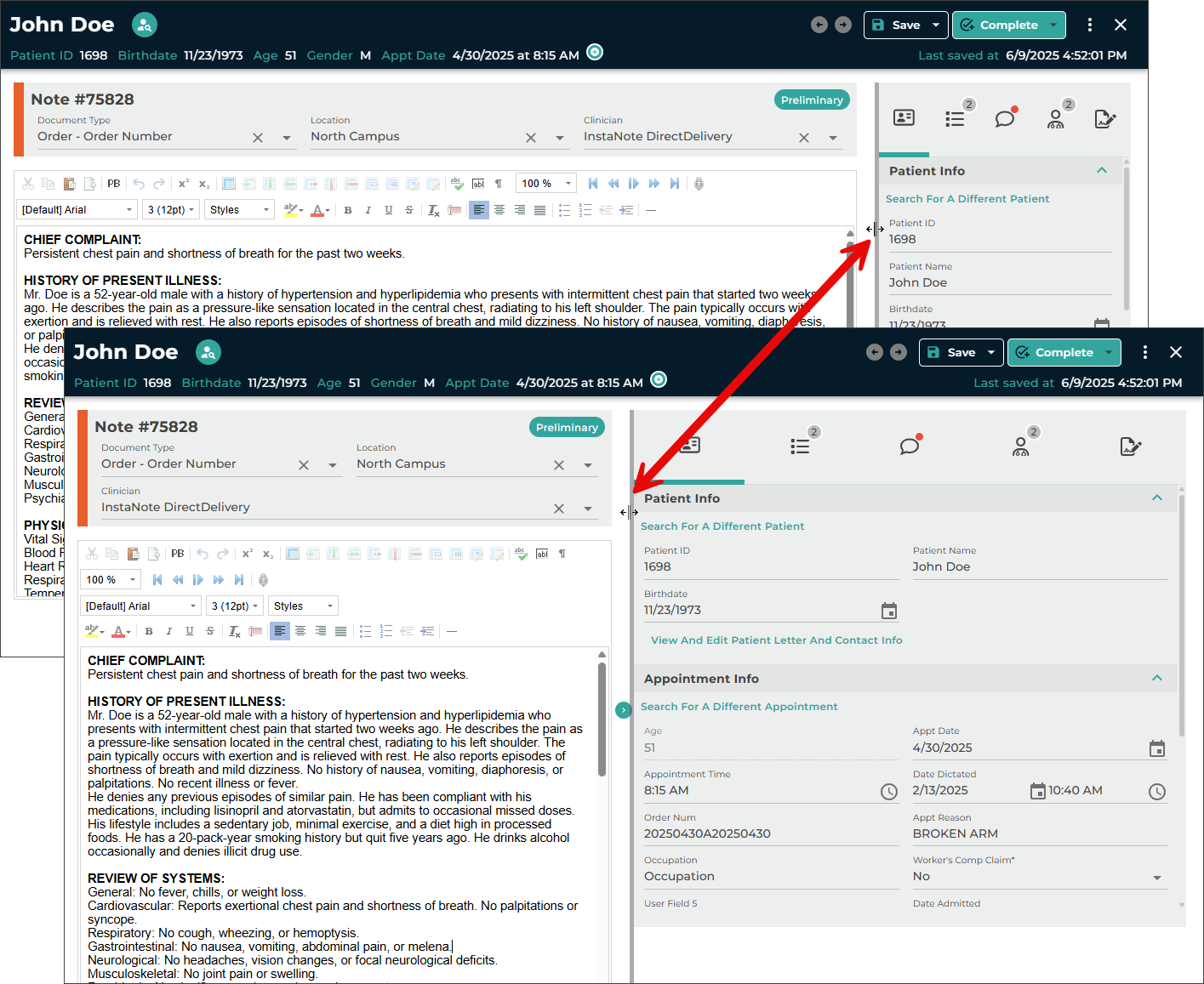 - Manual edits can also be made to the note text and demographics.