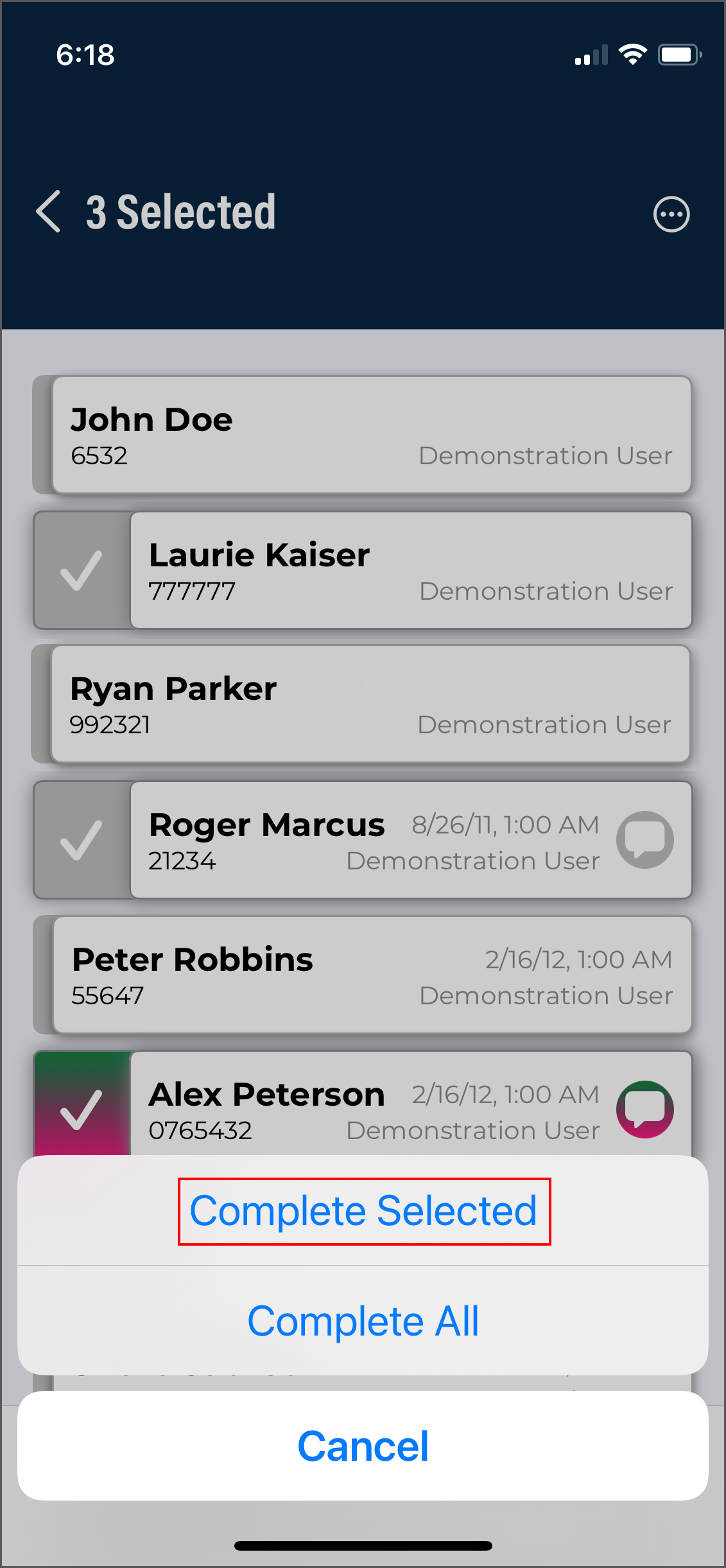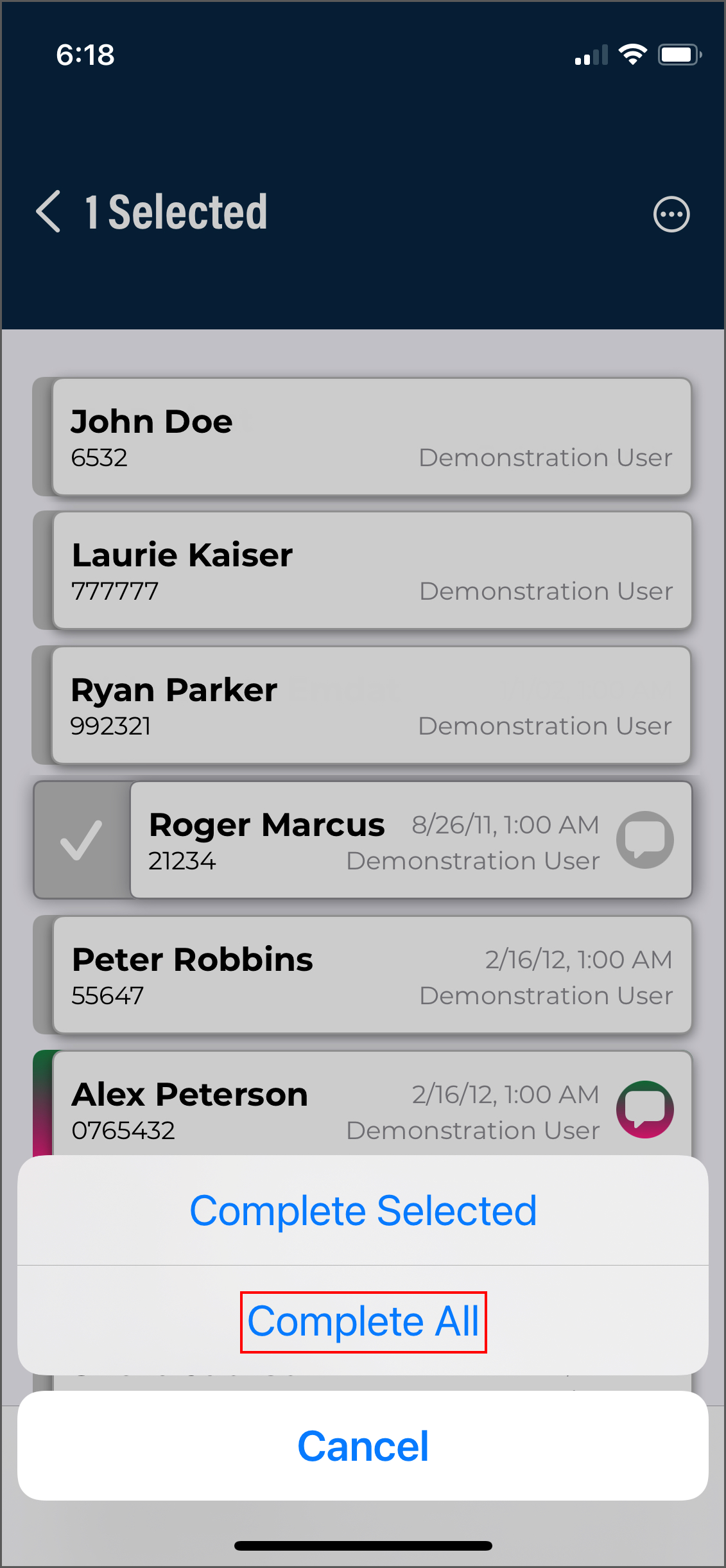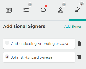 The Complete button may also sign notes, depending on their position in the workflow.