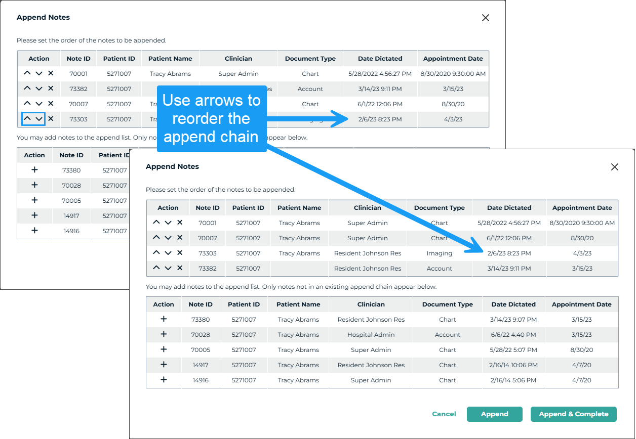- Multiple correction note dictations can be recorded on the same note.