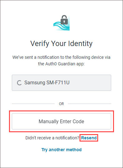 If you do not receive the notification, you can choose to have the notification resent, or you can manually enter the code by tapping Manually Enter Code on the 'Verify Your Identity' screen.
