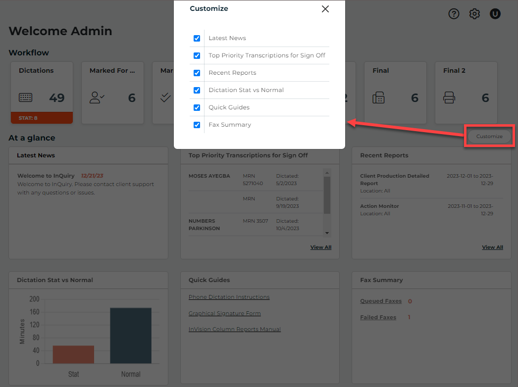 InstaNote documents can be reprocessed in InQuiry if the dictation was previously processed by InstaNote and both the dictator and selected document type have InstaNote Direct Delivery enabled.
