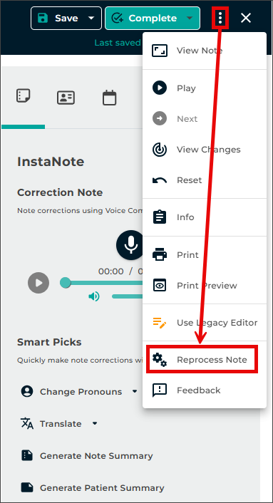 - Review the reprocessed note in its entirety to confirm accuracy and completeness.