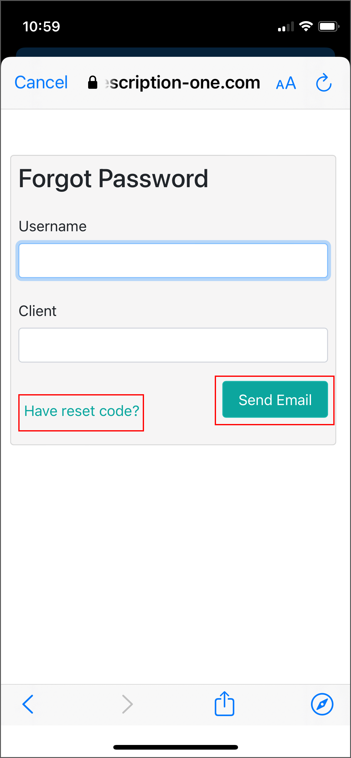 2. On the ‘Forgot Password’ screen, click either the Send Email button or Have reset code? link (if you already have a reset code).