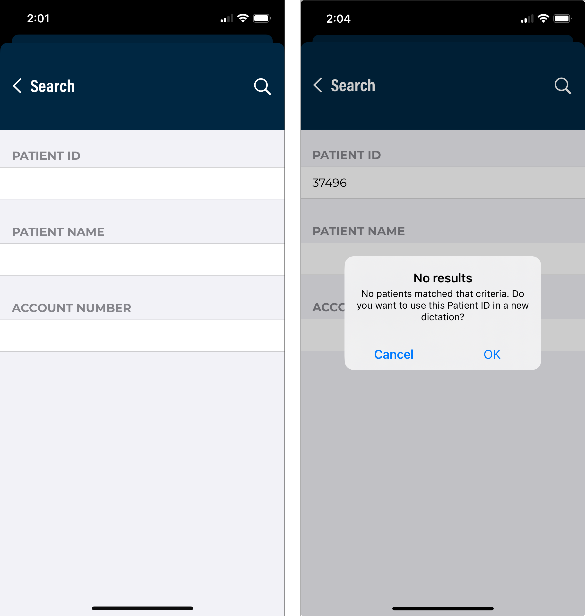 Uninstalling the app will permanently delete any incomplete (on-hold) dictations; please verify all started dictations have been uploaded prior to uninstalling the app. The user will be prompted to choose the region upon the first login after reinstalling the app.