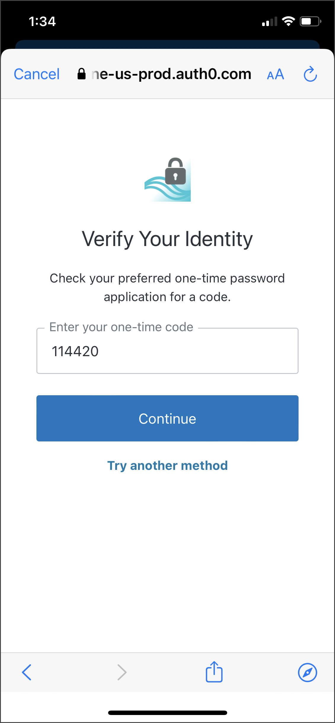 If you selected Send Email, you can also copy the code from the email and paste it here.