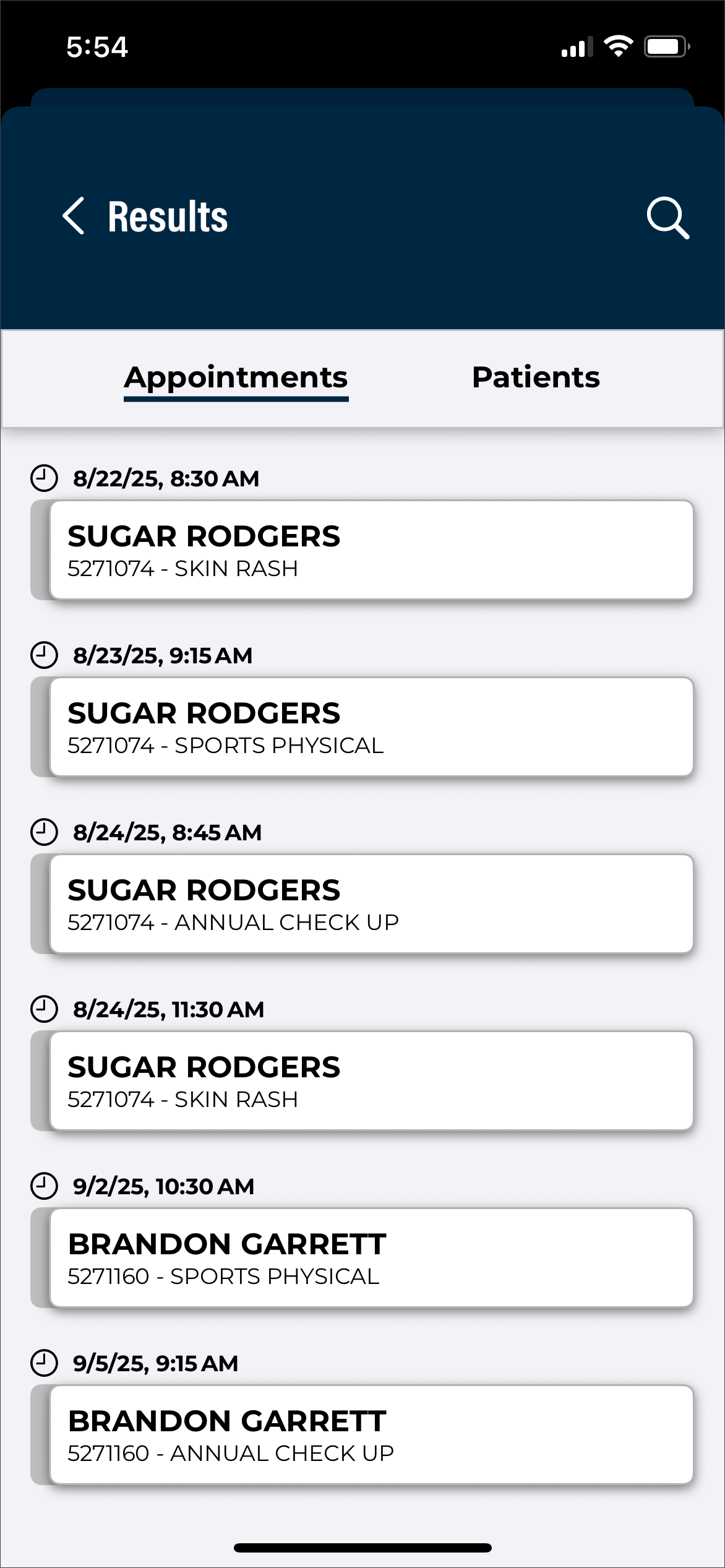 By default, this tab is named Patients. The account administrator can change this label to something more appropriate to the client.