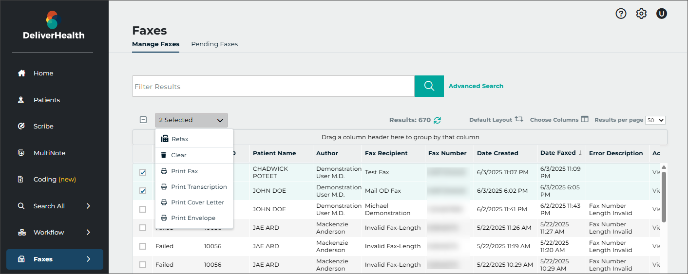 - The reprocess button will be disabled if the dictation was not previously processed by InstaNote or if the document type or dictator do not have InstaNote Direct Delivery enabled.